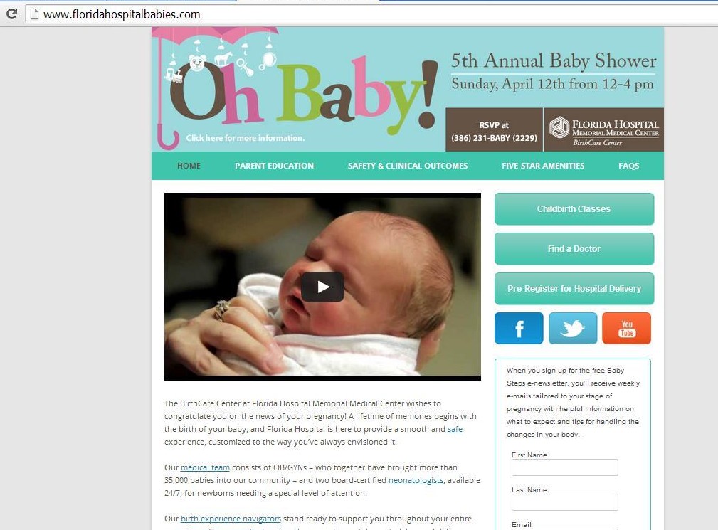 • Campaign landing page with information on OB/GYNs with privileges, prepared childbirth classes, preregistration for delivery, FAQs for hospital stay, etc.